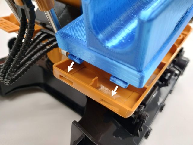 ショベル本体のキャビンがあった位置に,組み立てたバッテリホルダを取り付けます.
