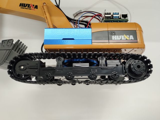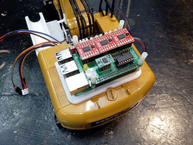 まず,後部カバーの上のバッテリを載せるスペースに,Raspberry Piを載せた3Dプリントの蓋を載せます.