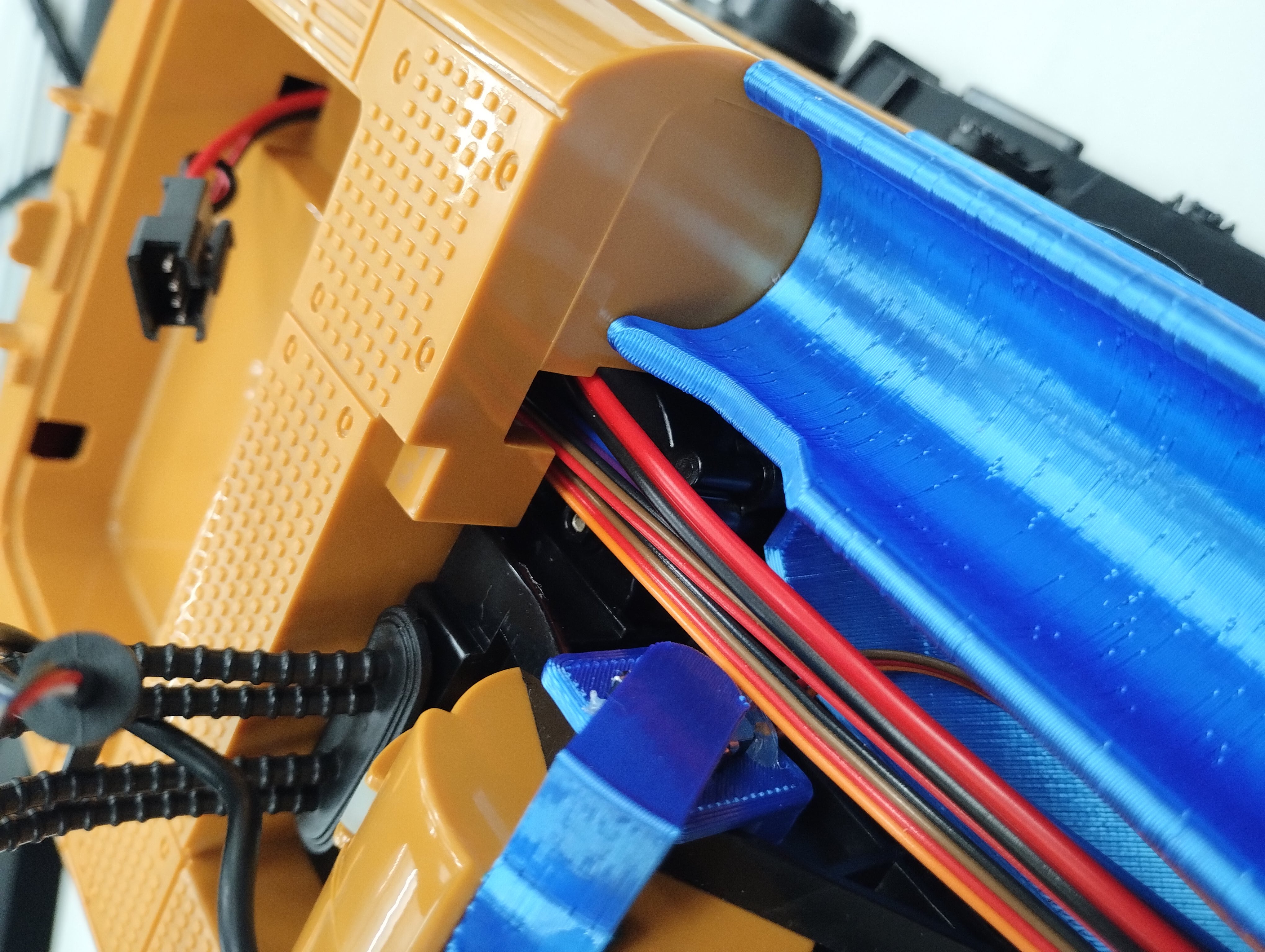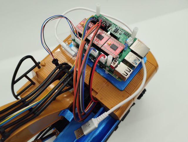 最後に取り外したラジコンの部品や3Dプリント部品の取り付けと配線を行い,動かせる状態にします.